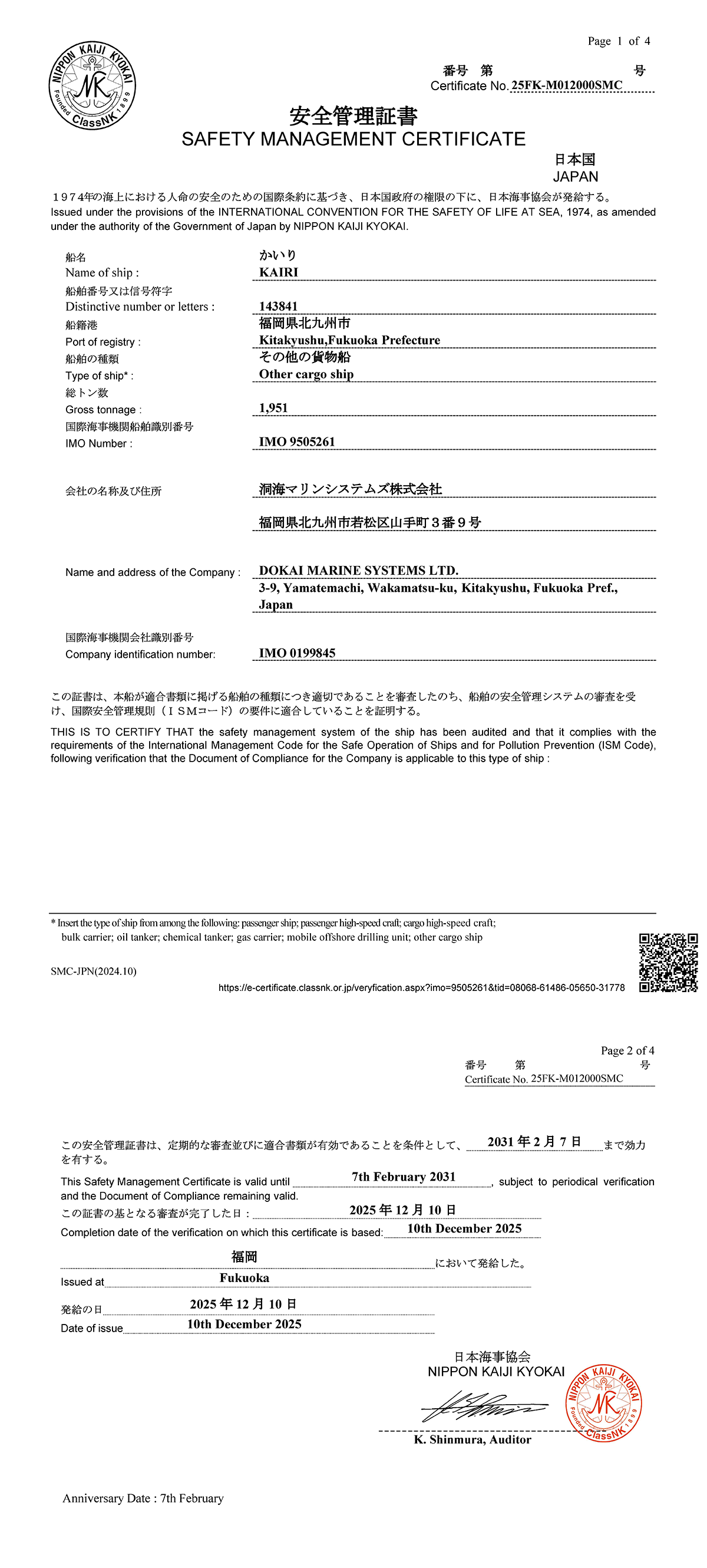 ISM stands for International Safety Management Code, an international regulation that shipping companies and their vessels must comply with to ensure safe operations and protect the marine environment. It was established by the International Maritime Organization (IMO) and has been fully implemented since 1998 as part of the SOLAS Convention (International Convention for the Safety of Life at Sea).