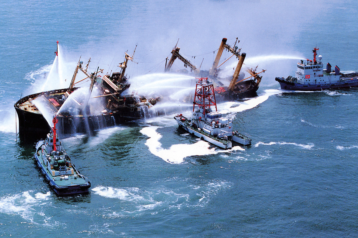 Our tugboats are fully equipped with Type 3 and Type 4 firefighting systems, ensuring thorough preparedness not only for fire-related incidents, but for a wide range of maritime emergencies. We are capable of responding swiftly and effectively to serious incidents such as collisions, groundings, and onboard fires, as well as unexpected situations such as towing disabled vessels due to mechanical failure.
